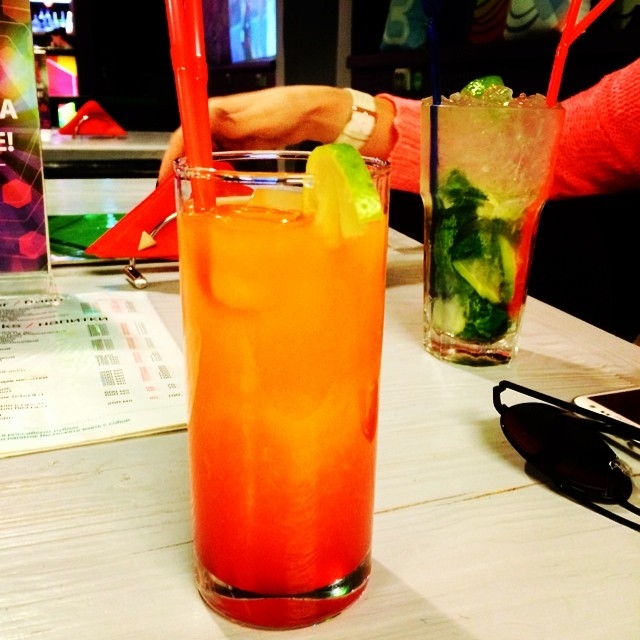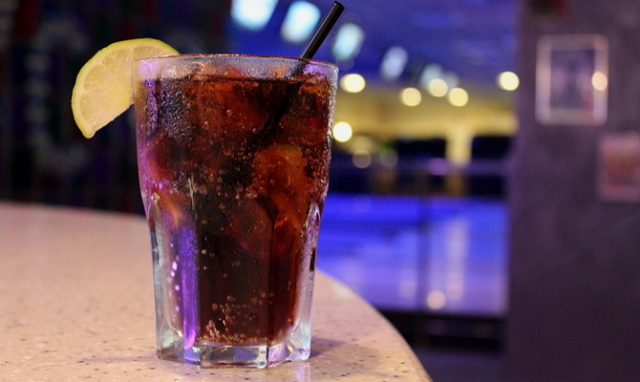 - Наполните высокий стакан льдом, налейте ром (50 мл), налейте сок (100 мл), отожмите дольку лимона или лайма.