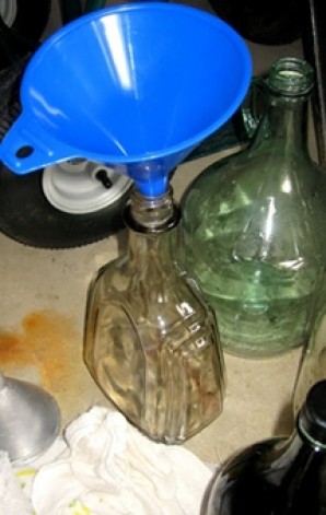 - Снимаем вино с осадка и переливаем в чистую тару: банки и бутылки с плотными крышками и крышками.