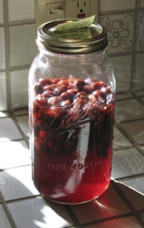 - Закрываем капроновой крышкой и отправляем в темное место на месяц. Через несколько дней сахар растворится, а ягоды придадут напитку свой сок и аромат. Через 30 дней откройте банку. Как видите, некоторые ягоды стабилизировались, а уровень настоя снизился.