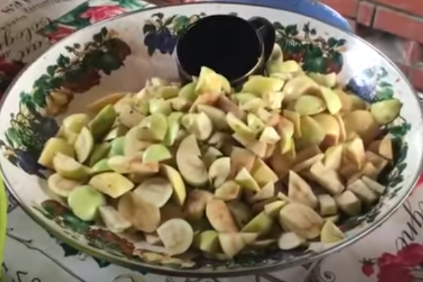 - Яблоки нарезать кусочками, удалив сердцевину с косточками.
