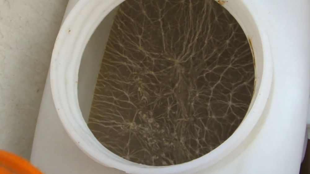 На видео отчётливо видны большие колонии грибов, организовавшие на поверхности сусла целую белую сетку. Всё это дело автор решил однозначно выбросить, чтобы не рисковать своим здоровьем.