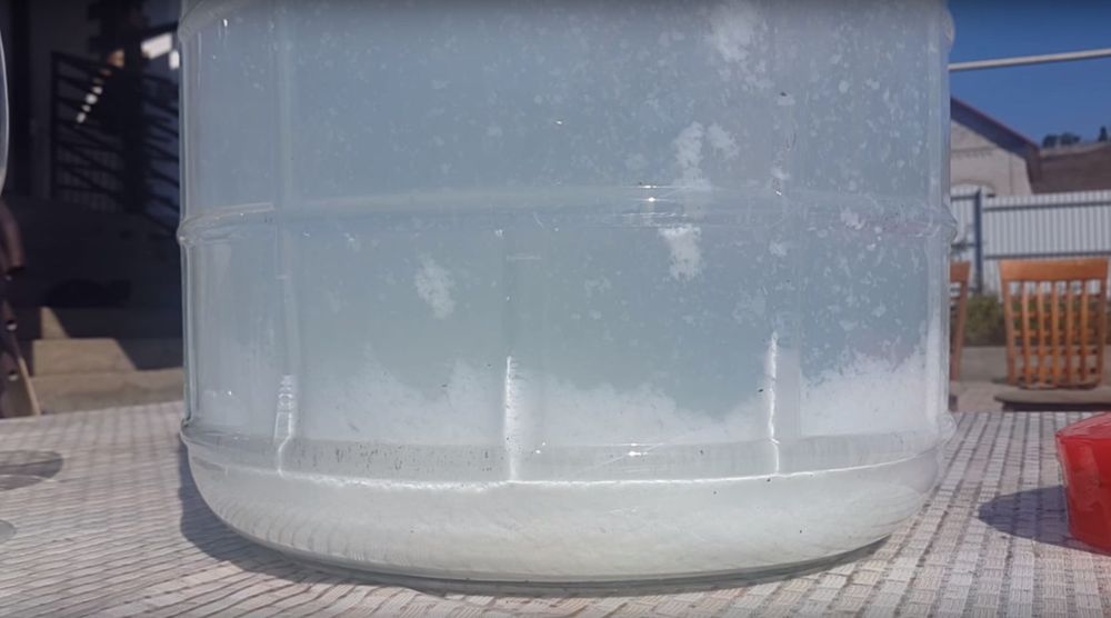 - Снимаем дистиллят с осадка и смешиваем с водой до получения 20% крепости.