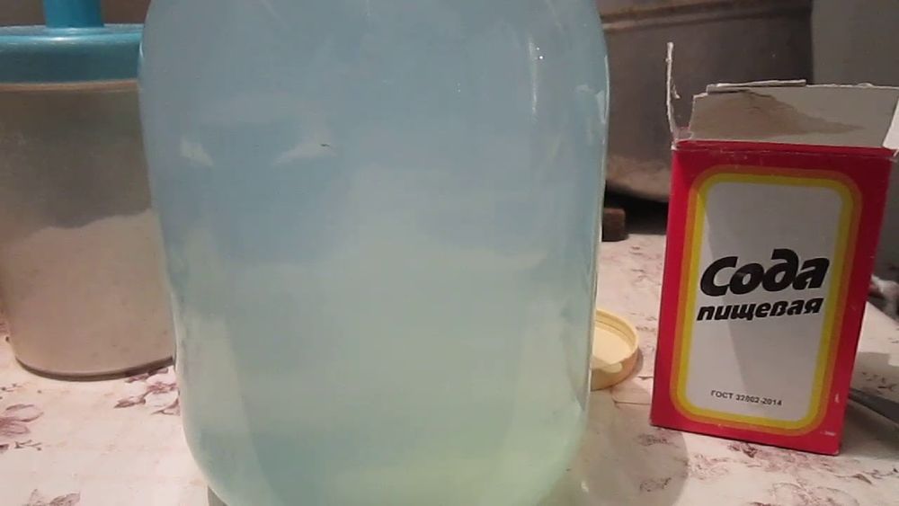 - Берём соду в пропорциях 10 грамм на 1 литр продукта и перемешиваем её с таким же количеством воды (10 грамм соды на 10 мл воды).