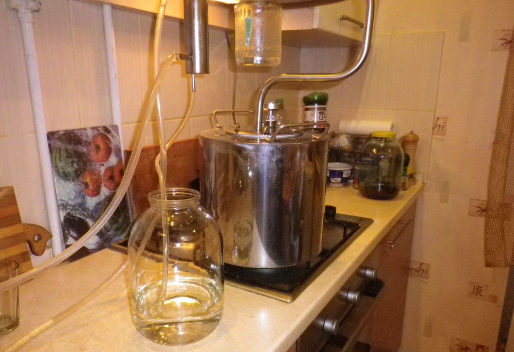 - Разбавляем получившийся продукт чистой водой до крепости 20 градусов и отправляем на вторую перегонку.