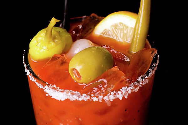 Состав: 50 мл водки, 100 мл томатного сока, 10 мл лимонного сока, 10 г сельдерея, 5 капель соуса сторожа, 3 капли табаско, соль, перец молотый.