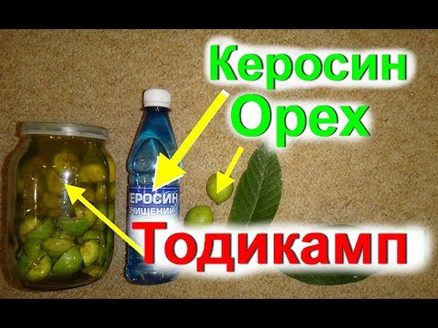 Возможно, многим покажется, что грецкий орех и керосин — совершенно несовместимые вещи. Соединить два этих компонента и создать из них удивительное лекарство смог учёный Михаил Тодик. Существует много способов изготовления этого средства. Всё, что вам необходимо для него — это компоненты, в качестве которых вы уверены, и немного терпения. И учтите, что следует использовать плоды только незрелого, то есть зеленого, грецкого ореха, поэтому собирайте их приблизительно в конце весны.