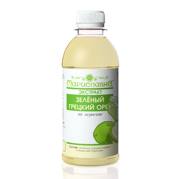 Грецкие орехи для керосиновой настойки нужны такие, чтобы в них содержалось много активных веществ, а особенно йода. Поэтому нужно использовать незрелые орехи, которые еще в зеленой кожуре. Орехи очищают от кожуры и скорлупы, тщательно измельчают ножом или перекручивают на мясорубке, далее заливают заранее приготовленным и при необходимости профильтрованным керосином. Используют 2 части орехов на 10 частей керосина. Настаивают в прохладном месте где нет доступа солнечных лучей, н-р в шкафу в течение 1,5 месяцев. Тара для лекарства должна быть обязательно стеклянной, лучше темного цвета. Время от времени настойку взбалтывают.