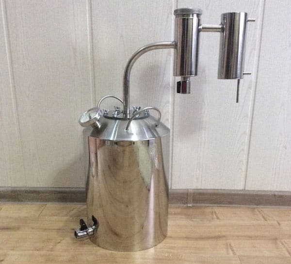 Перегонять следует впервые, отбирая продукт до тех пор, пока крепость не снизится минимум до 30%. Также нужно разбавлять дистиллят отфильтрованной водой до 20%, также допустимо очищение любым другим химическим способом.