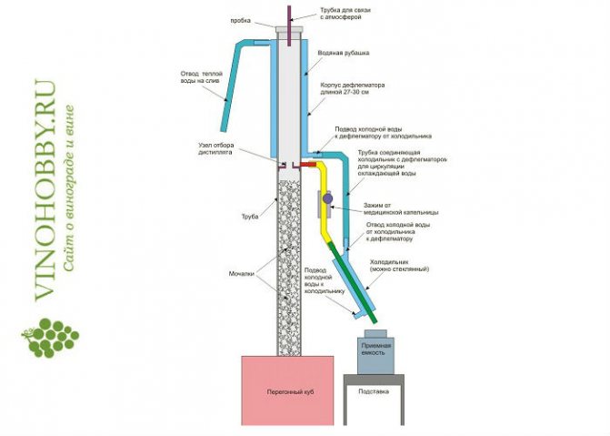 В схему самогона еще входят обязательные элементы: