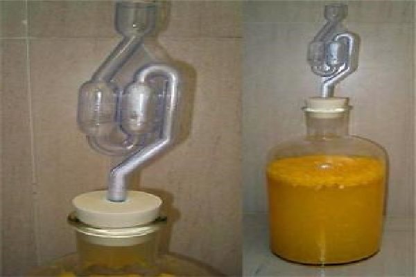 - Настаивать сок нужно 2 дня при комнатной температуре. Затем вам нужно активировать коммерческие дрожжи и добавить их в бутылки. На них устанавливают гидрозатвор и отправляют в погреб на длительное брожение.
