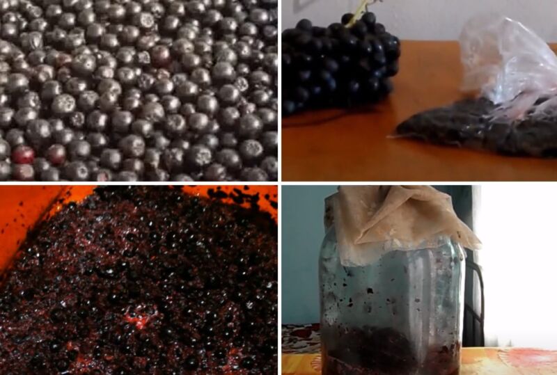 - Низкое качество дрожжей: штаммы диких дрожжей нестабильны, поэтому могут перестать работать в любой момент. Для сбора добавьте магазинные винные дрожжи, домашнюю закваску, качественный изюм (20-30 г на 5 литров) или толченый виноград (5-6 штук на 10 литров).