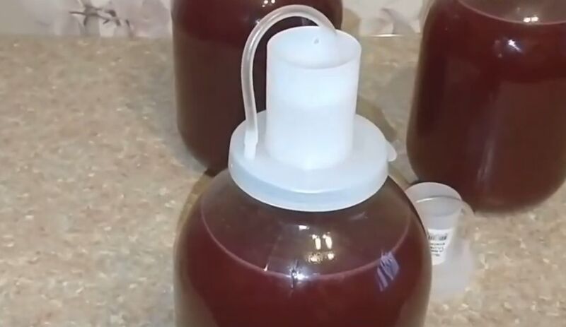 Во избежание окисления емкость необходимо заполнять до дна, исключая воздушную прослойку. На первые 5-7 дней установите гидрозатвор, затем замените герметичной крышкой. Поставьте емкость в подходящее место для спокойного брожения при температуре + 8-12 ° C.
