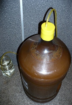 Полученное сусло необходимо поместить в заранее подготовленную емкость для брожения (промытую и просушенную). Обычно это бутылка с более узким горлышком, на которую удобно прикрепить гидрозатвор или надеть резиновую перчатку.