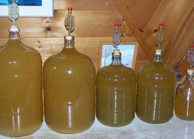 - Чтобы получить сок, смесь необходимо хорошо отжать. Вылейте сок в бутылку с вином (сулеу). Закройте горловину гидрозатвором. Процесс брожения обычно занимает от одного до полутора месяцев.