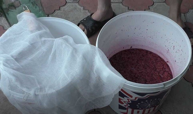 Чтобы вино не закисло и сверху не появилась плесень, необходимо ежедневно перемешивать содержимое ведра несколько раз в день (3-4 раза.