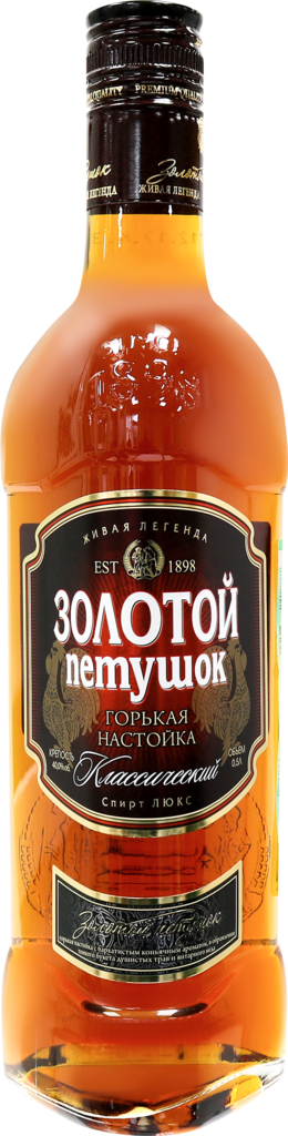 - Настойка горькая Золотой петушок (в состав входит значительное количество спиртных напитков: коньяк, портвейн, алкоголь, чем и оправдывается название «настойка горькая»).